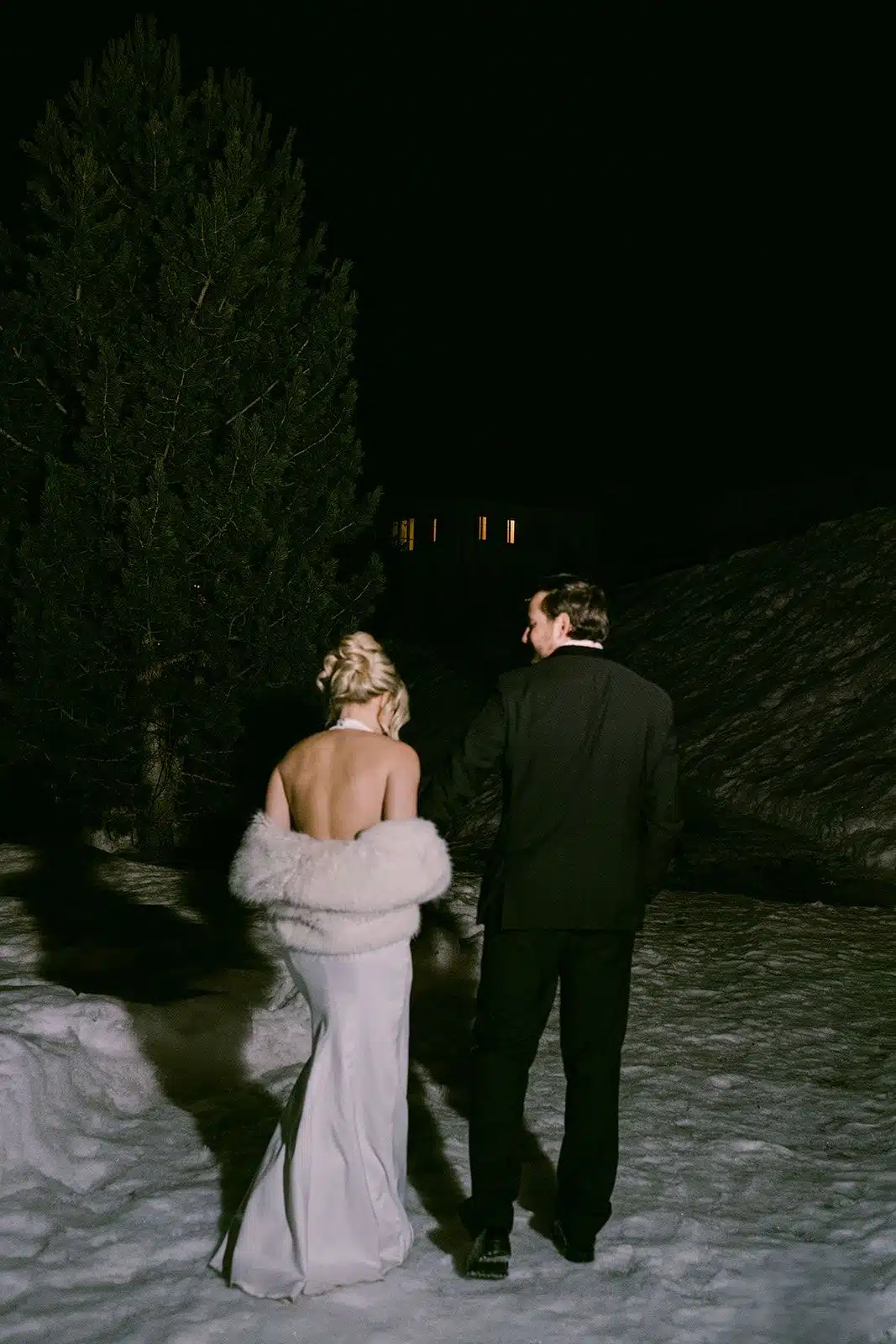 Sparkly details, beading, or sequins: These catch the light beautifully in winter settings — think candlelit receptions, snowy outdoor photos, or twinkling lights — giving that “ice-princess” glow.